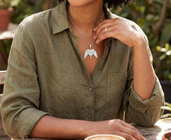 Colgante de piedra de cruz de plata con moissanita